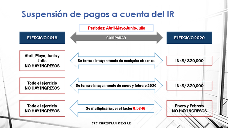 - Si los IN del 2020 disminuyen en más del 30% ==> SE SUSPENDE los pagos a cuenta